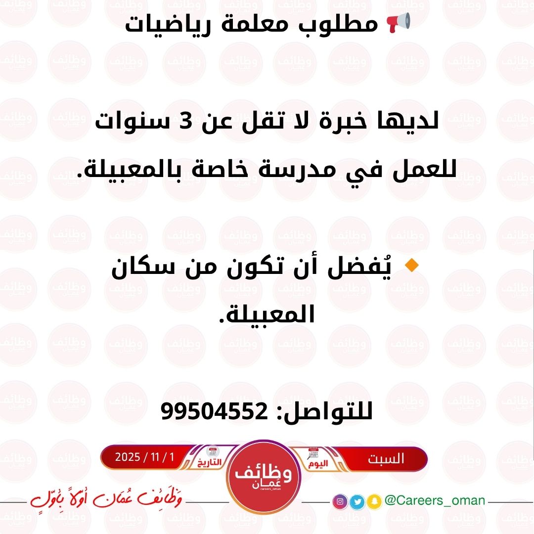 مدرسة خاصة بالمعبيلة - وظيفة شاغرة ( معلمة رياضيات )