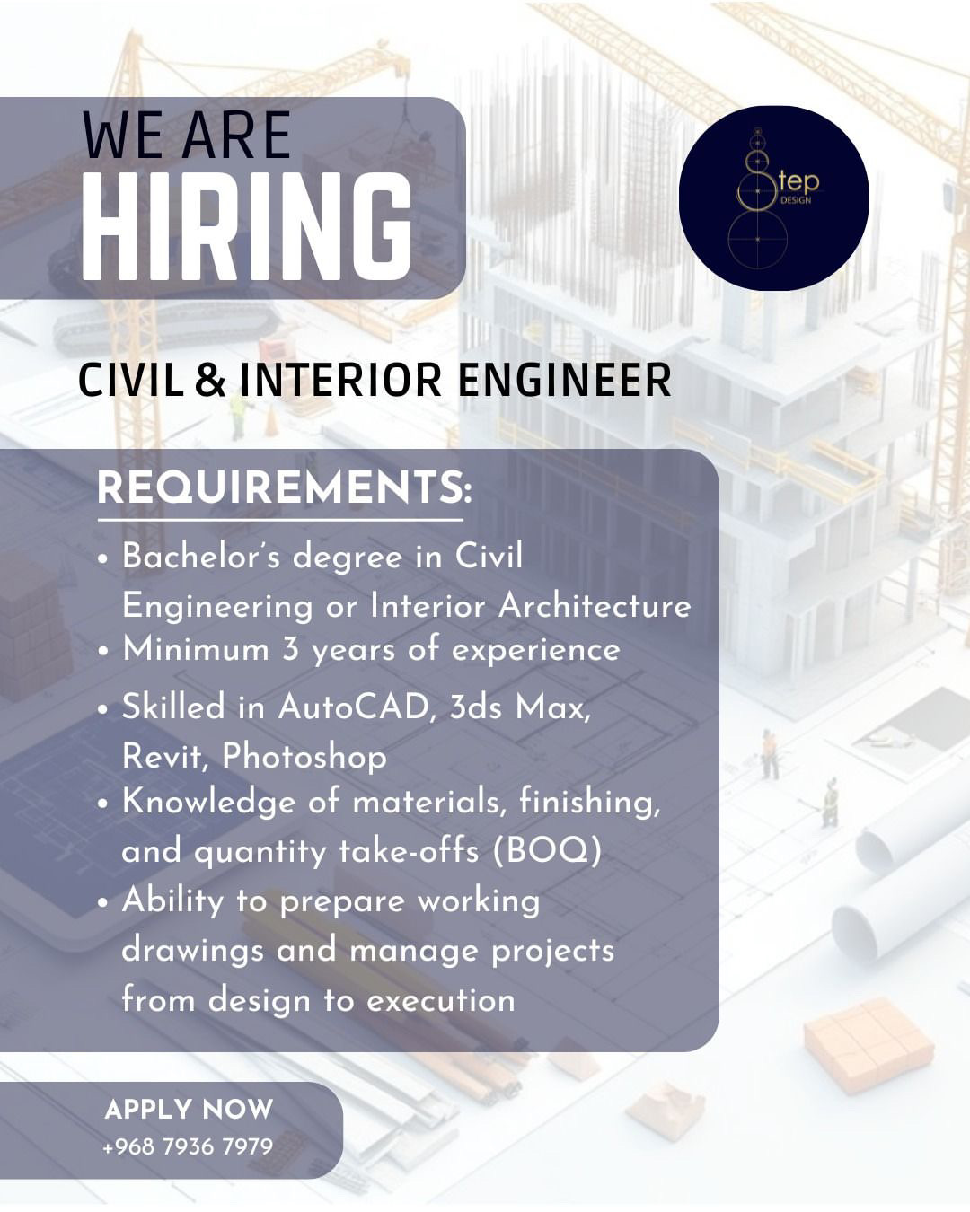 شركة ستيب ديزاين - وظيفة شاغرة ( CIVIL & INTERIOR ENGINEER )