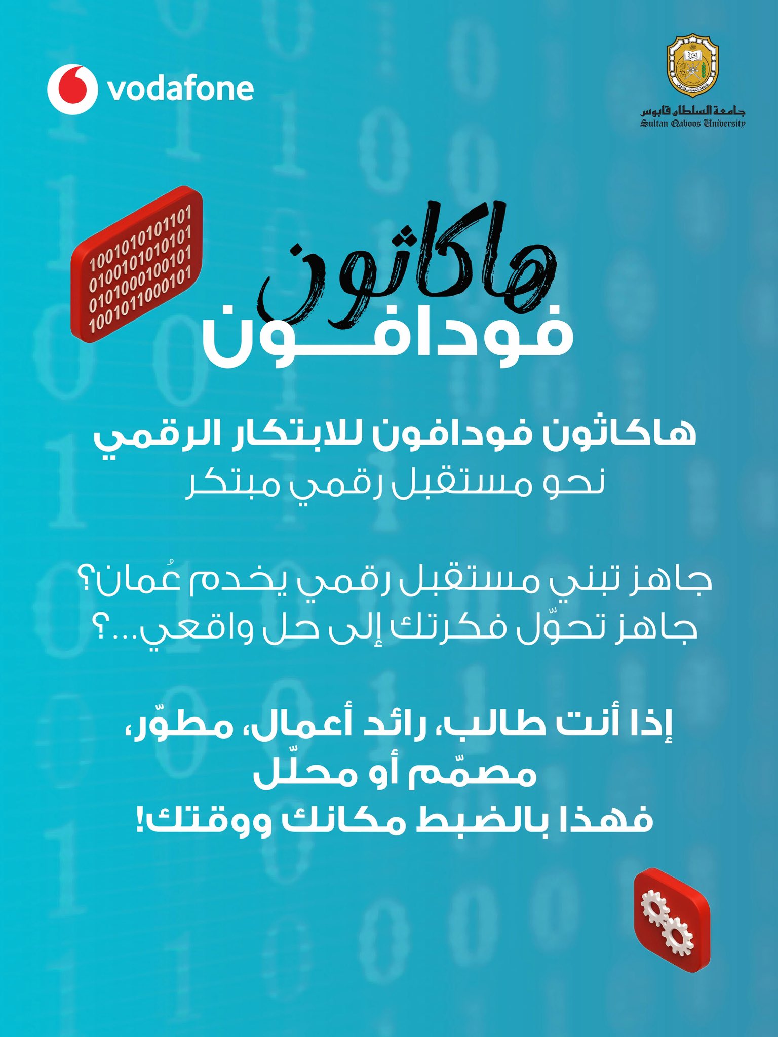 • شركة فودافون عمان - هاكاثون للابتكار الرقمي وصناعة المخصص لطلاب، رائد أعمال، مطوّر، مصمّم، أو محلّل )