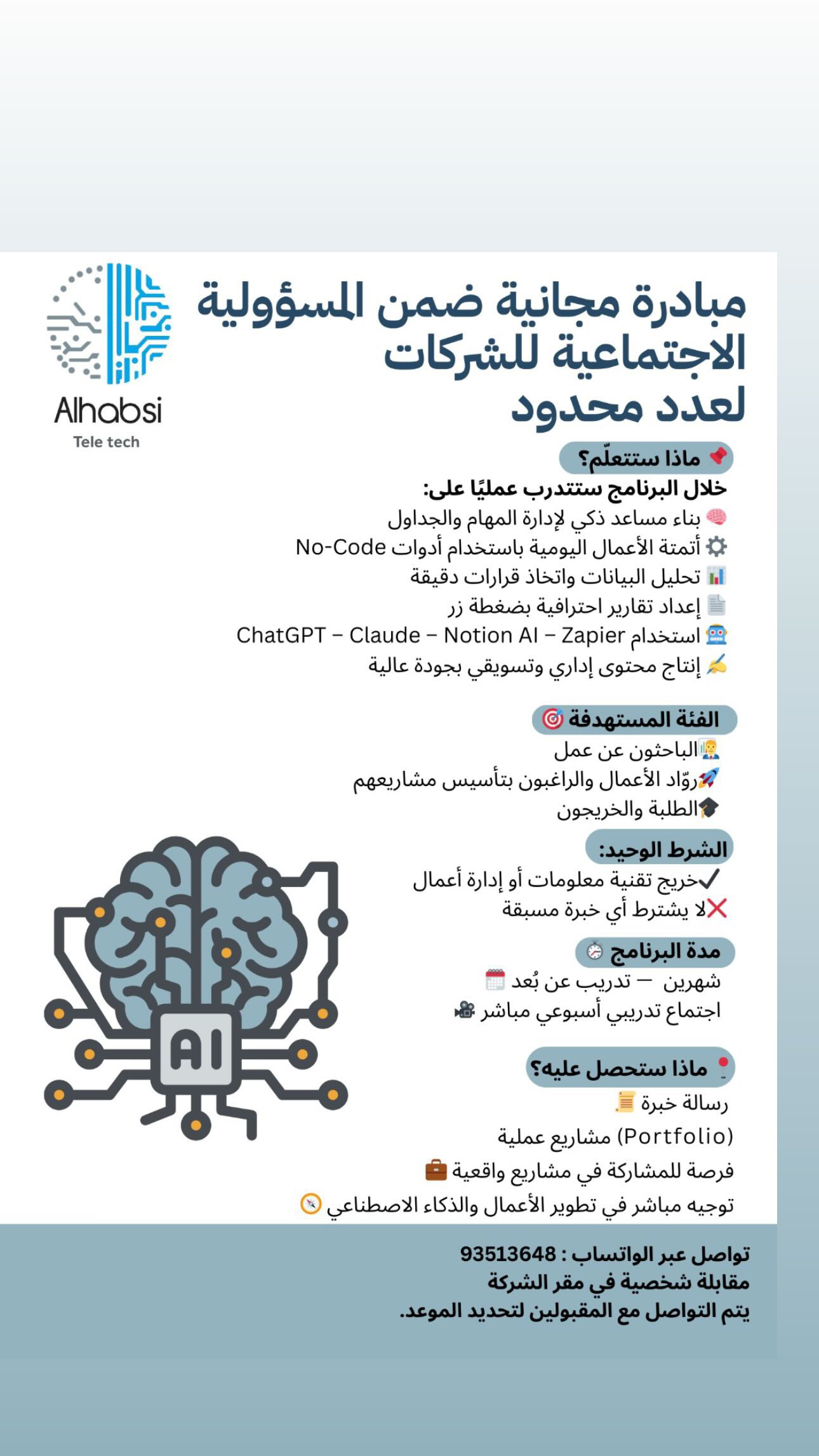 شركة الحبسي لتقنية المعلومات والاتصالات في الخوض - برنامج تدريبي لمدة شهرين في مختلف المجالات