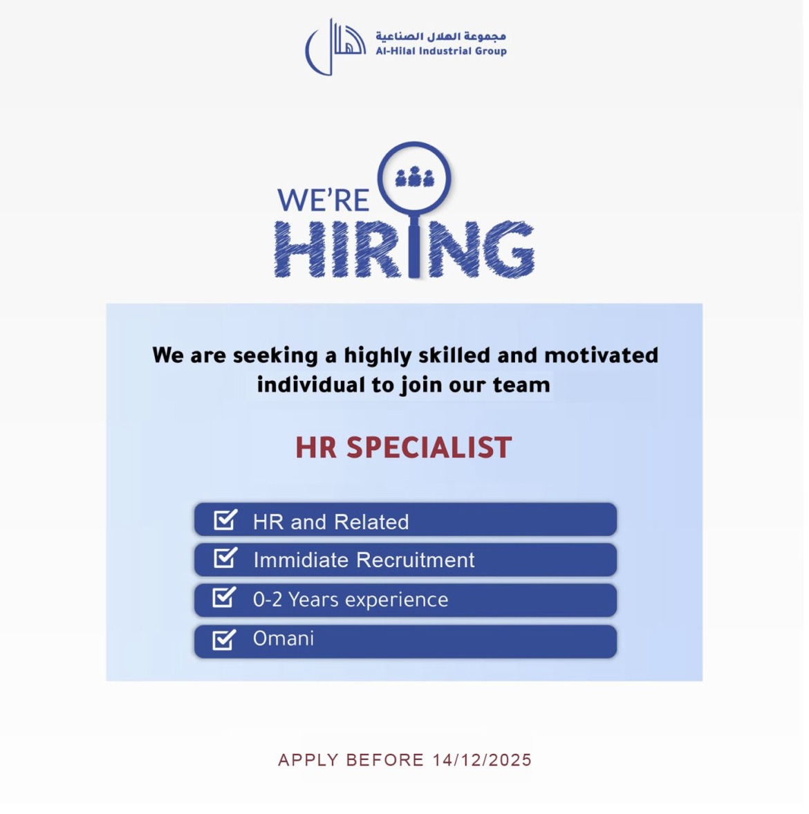 • مجموعة الهلال الصناعية - وظيفة شاغرة ( HR SPECIALIST )