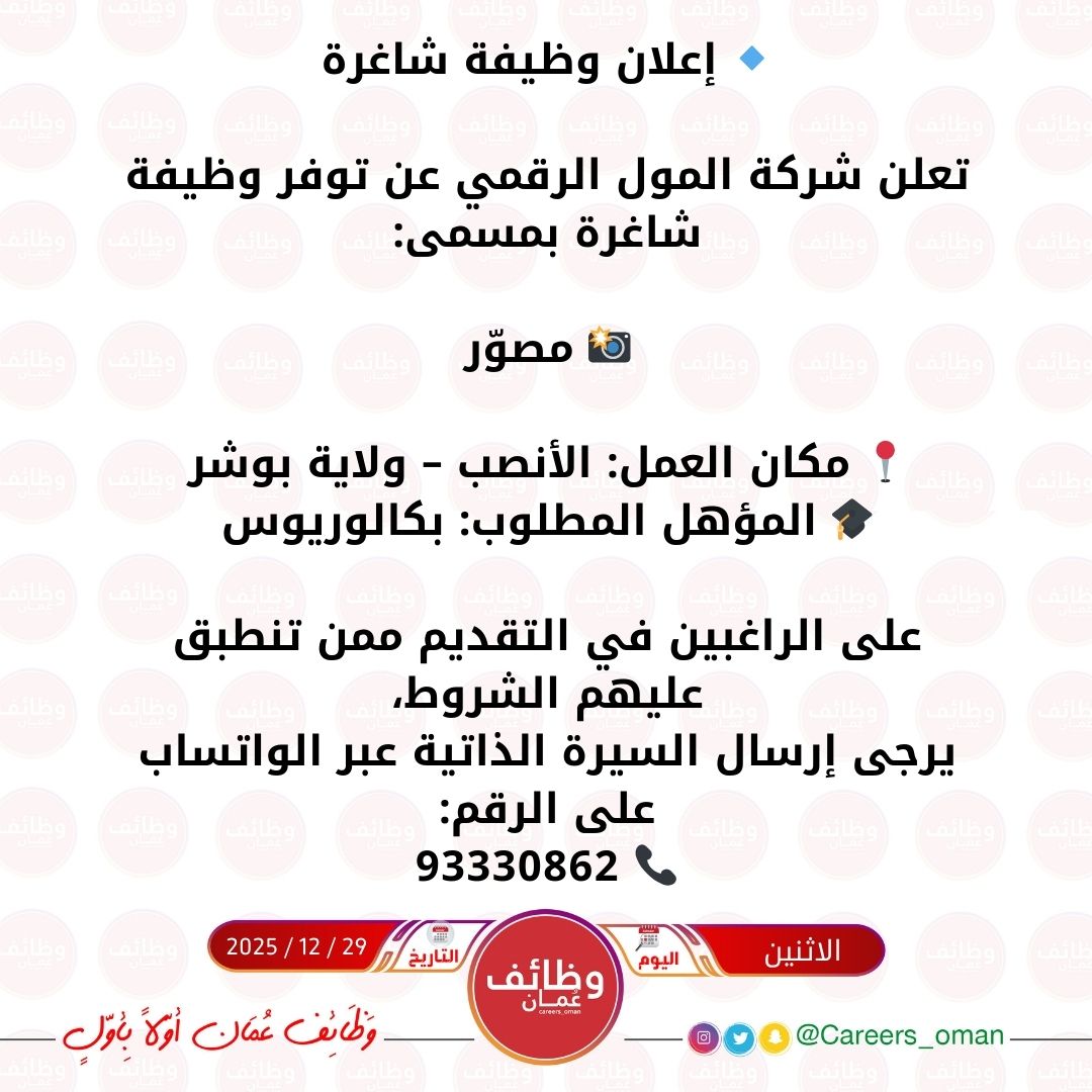 شركة المول الرقمي في بوشر - وظيفة شاغرة ( مصور )