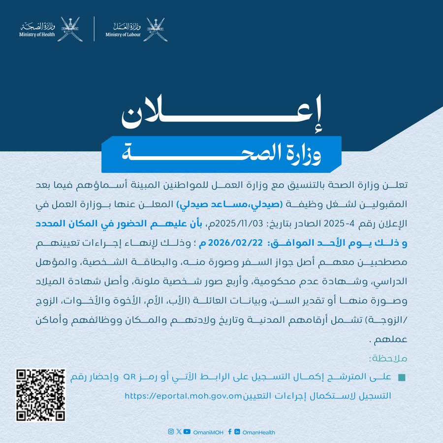 https://moh.gov.om/ar/المركز-الإعلام...ي-مساعد-صيدلي/