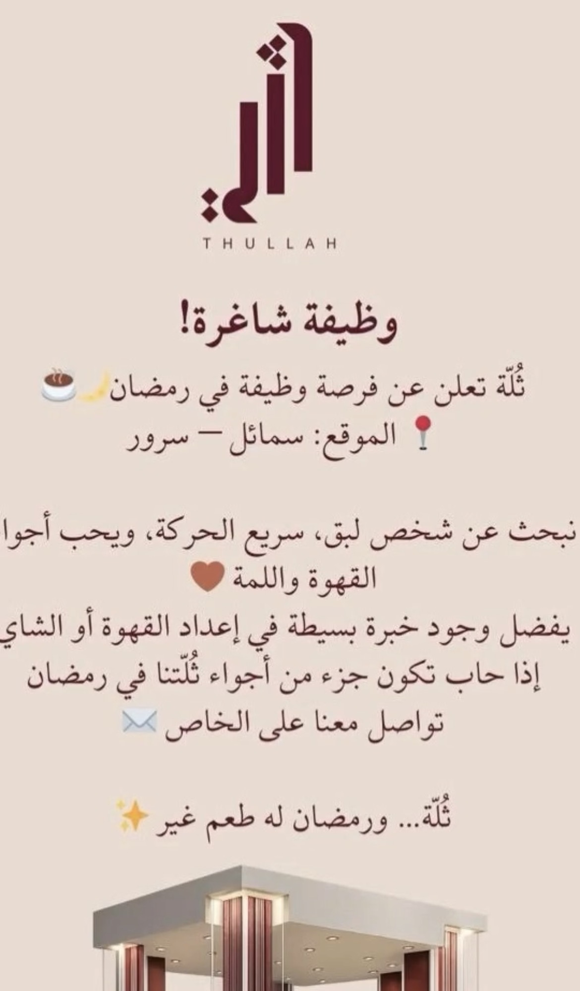 • ثُلّة عربة مختصة ببيع الشاي والقهوه والحلويات في سمائل - وظيفة شاغرة ( معد قهوة )