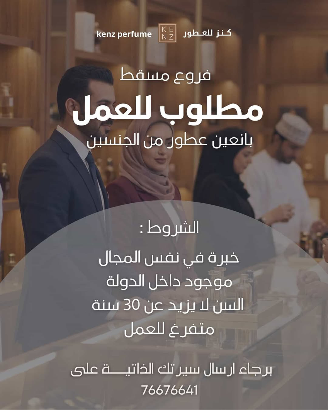 شركة كنز للعطور فرع مسقط - وظيفة شاغرة ( مطلوب بائعين عطور )