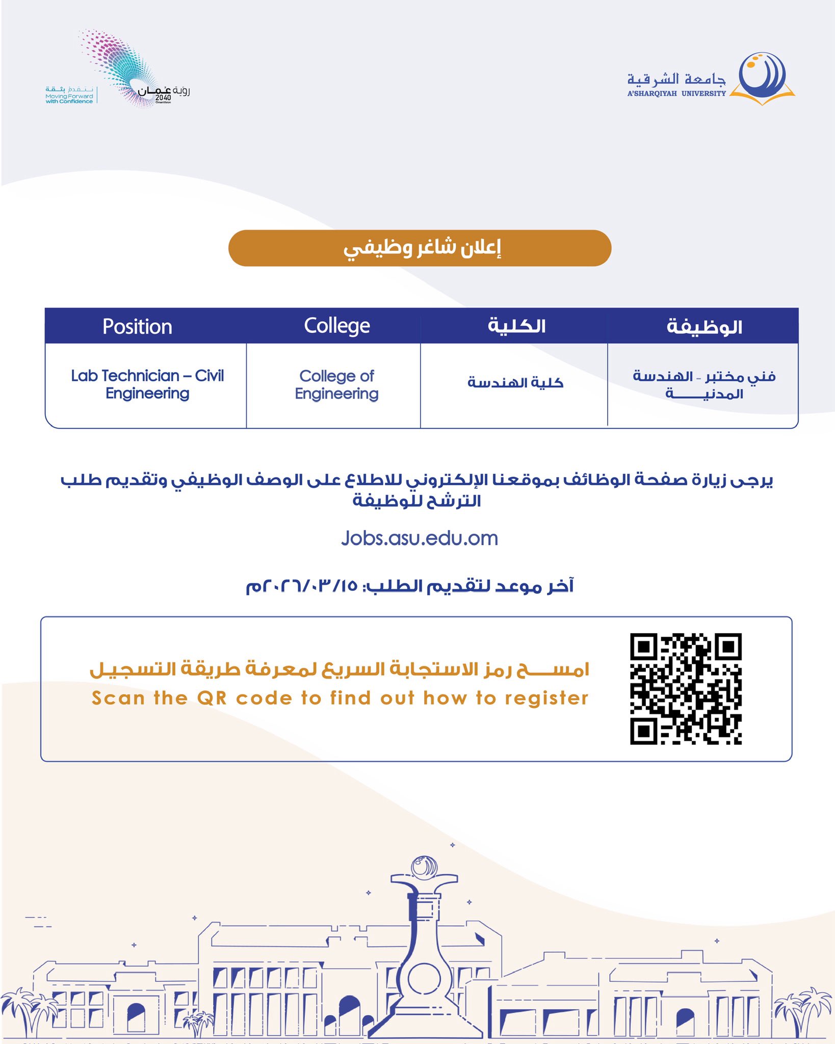 رابط التسجيل https://jobs.asu.edu.om/