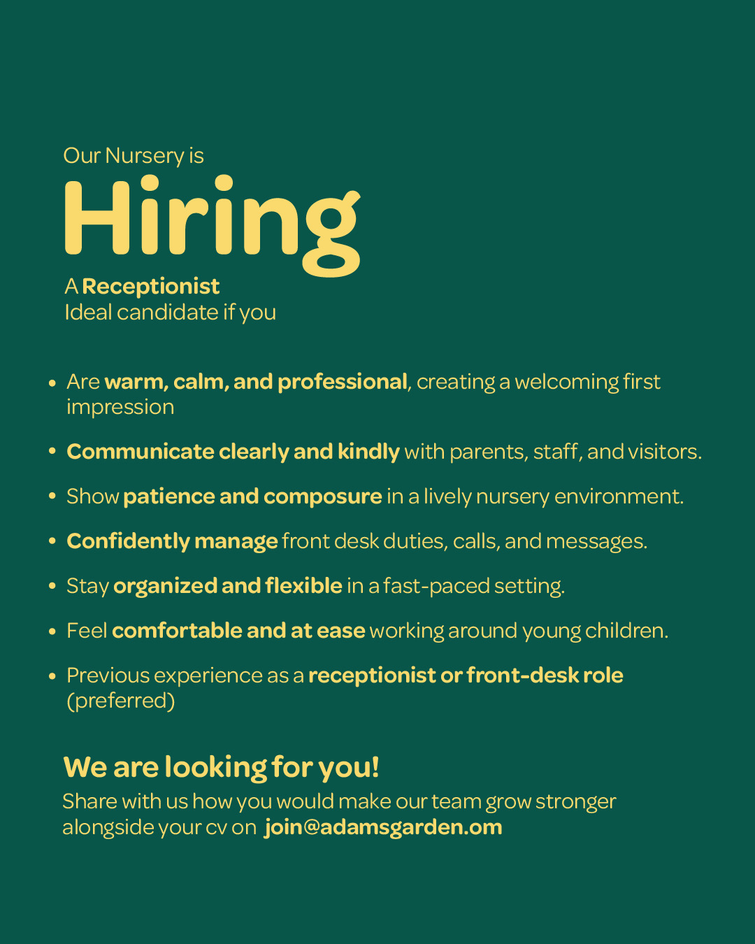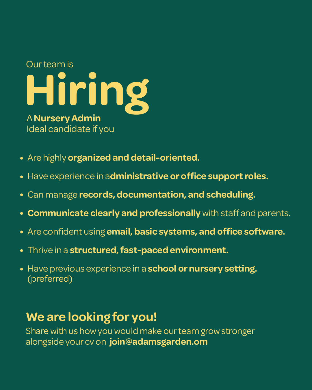 ارسل السيرة الذاتية على الايميل join@adamsgarden.om