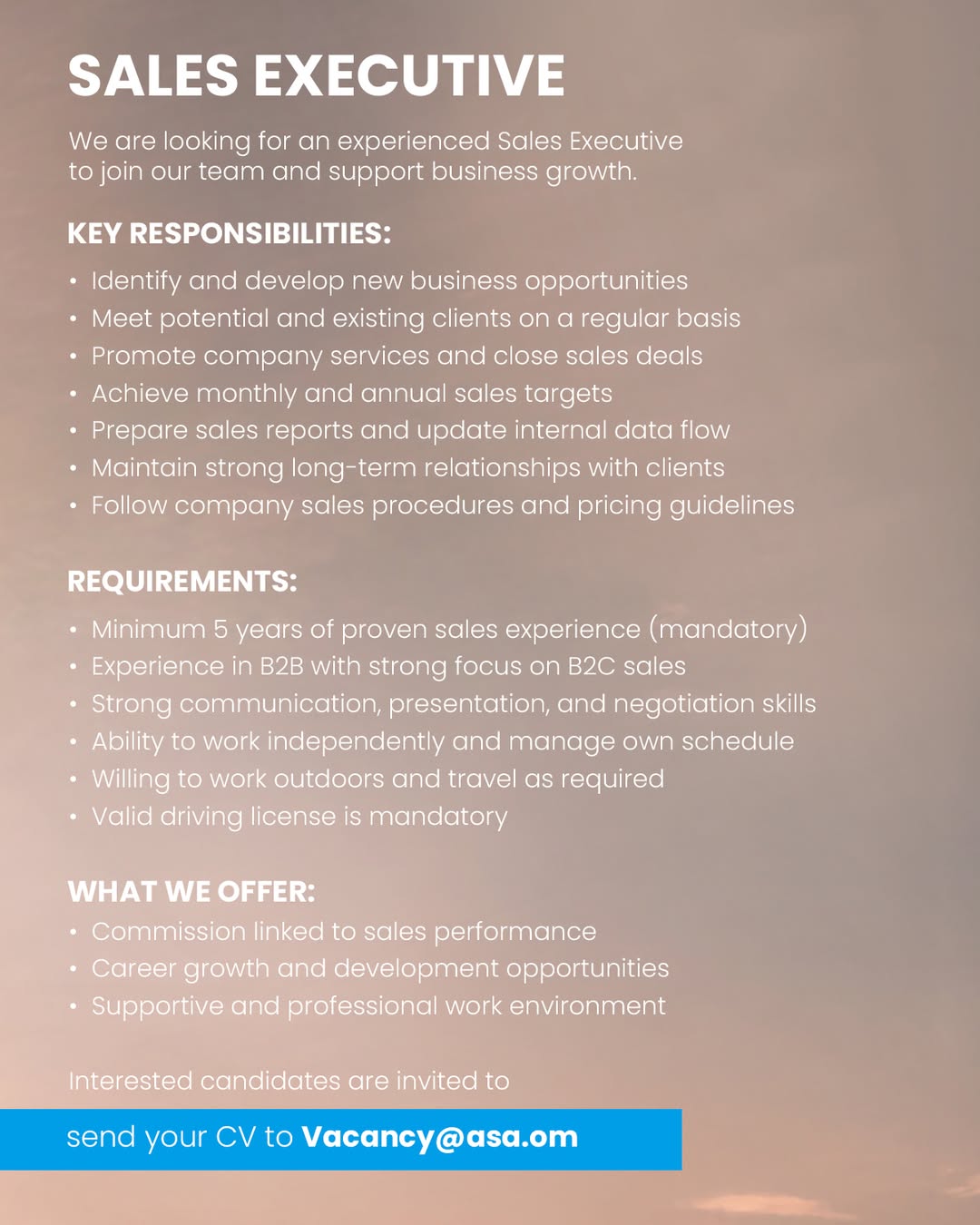 ارسل السيرة الذاتية على الايميل Vacancy@asa.om