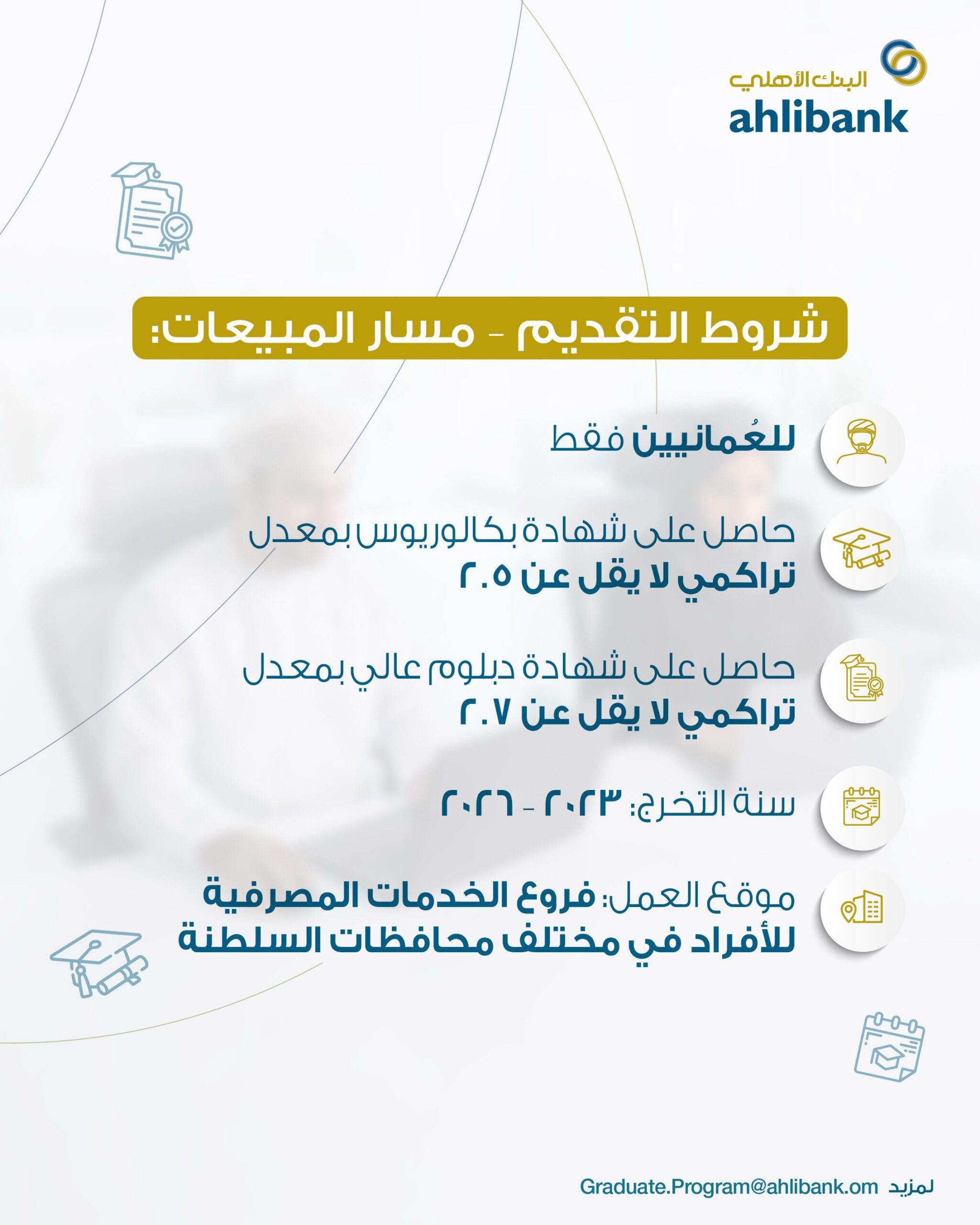 • البنك الاهلي - برنامج خريجي الأعمال ( المبيعات + المحللين )
