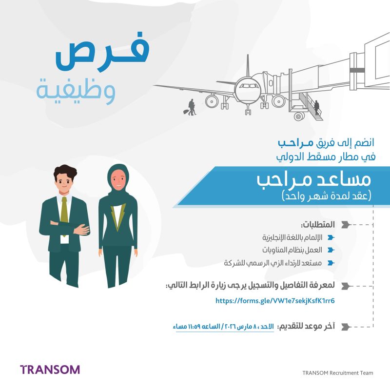 الموضوع: شركة ترانزوم المناولة - فرصة عمل بدوام جزئي ( مساعد مراحب )