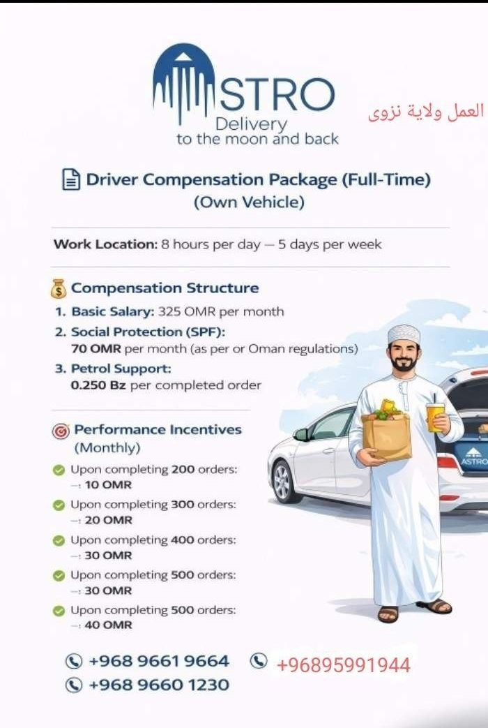 • شركة توصيل في ولاية نزوى - فرصة شاغرة ( سائق )