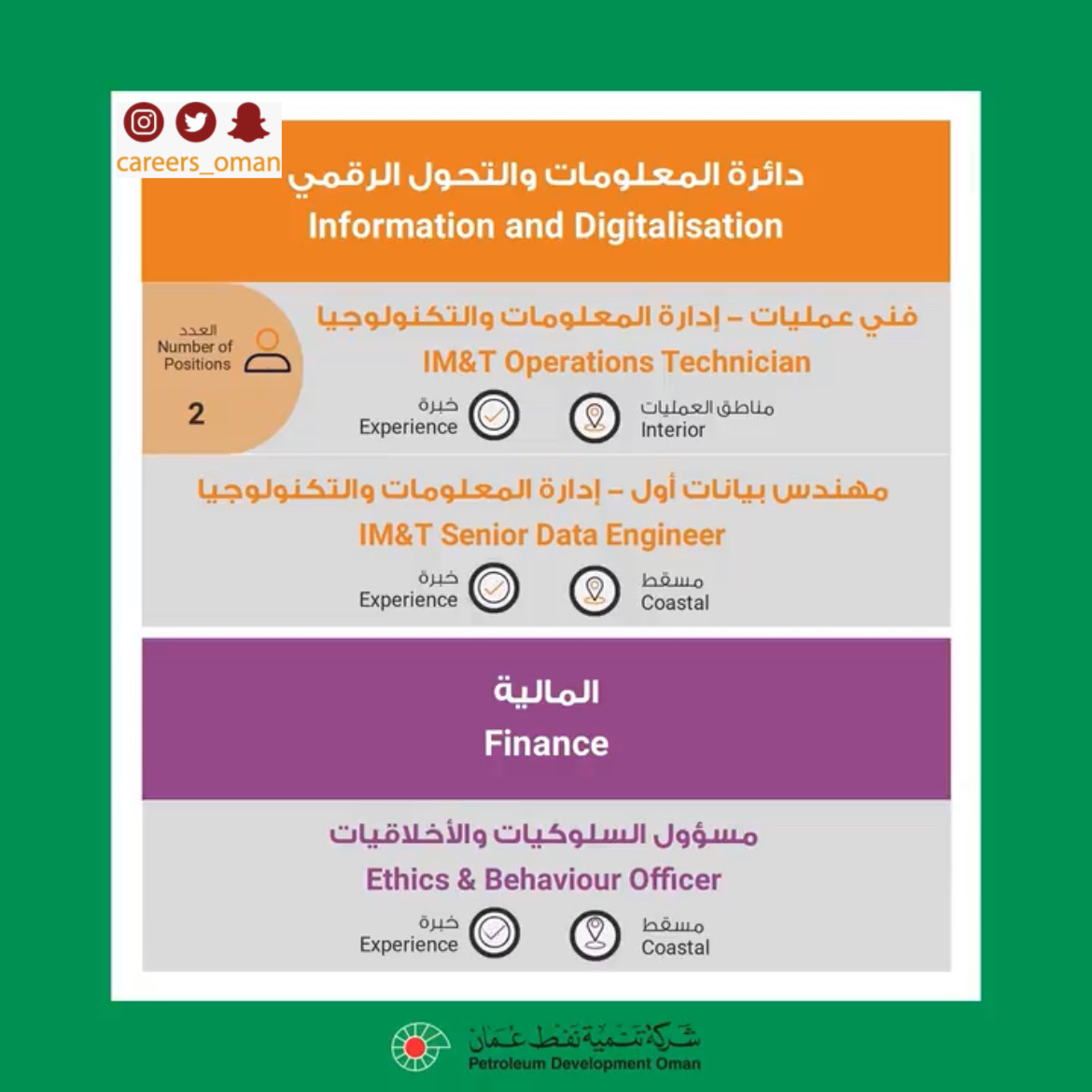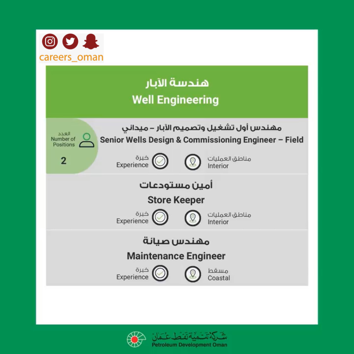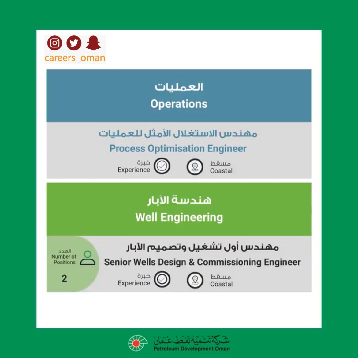 لتقديم الطلب ومعرفة المزيد عن هذه الفرص وغيرها، يرجى زيارة موقع وظائف النفط والغاز: petrojobs.om